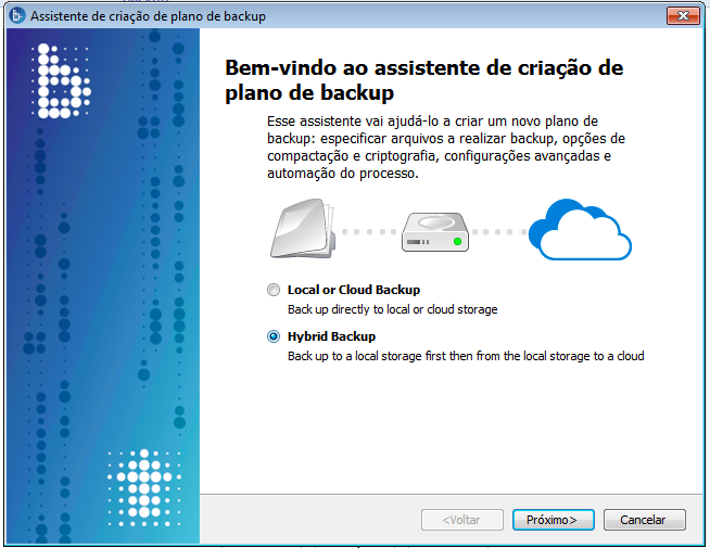 O Hybrid Backup veio para solucionar essas dificuldades. Essa ferramenta consolida funções de backup, restauração e sincronização de uma única imagem, onde de forma muito mais fácil e ágil, consegue transferir seus dados para espaços de armazenamento locais, remotos e em nuvem como um plano de recuperação de desastres e armazenamento de dados abrangente. Reduzindo significativamente o tempo do backup se fosse feito em ambos os lugares da maneira convencional, aumentando a segurança do seu arquivos. Uma das facilidades está na hora de restaurar arquivos. Se precisa restaurar arquivos durante o expediente da empresa, e não quer sobrecarregar a internet, você pode buscar os arquivos no servidor físico onde salvou o backup, agilizando seu processo sem interferir em outras áreas do seu negócio.
